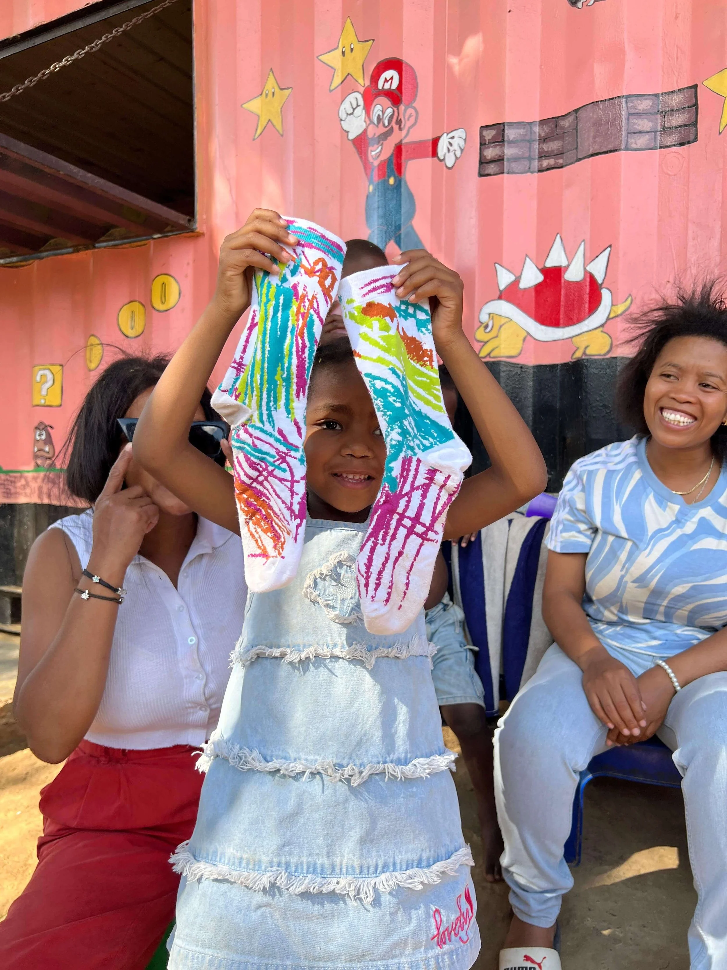 Selbstkreierte Socken von den Kindern. 5€ pro Paar fließen direkt an die Waisenhaus Familie 🤓