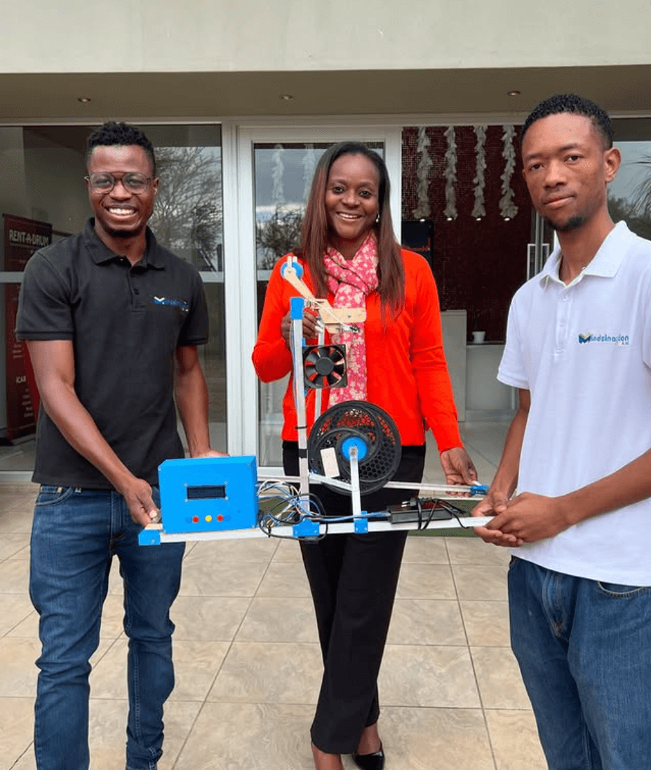 Die jungen Entwickler*innen haben einen Prototypen gebaut, der Plastikmüll in nutzbaren 3D-Druck-Draht verwandelt. Erste Tests laufen vielversprechend – und ein lokaler Käufer in Windhoek ist bereits an Bord.